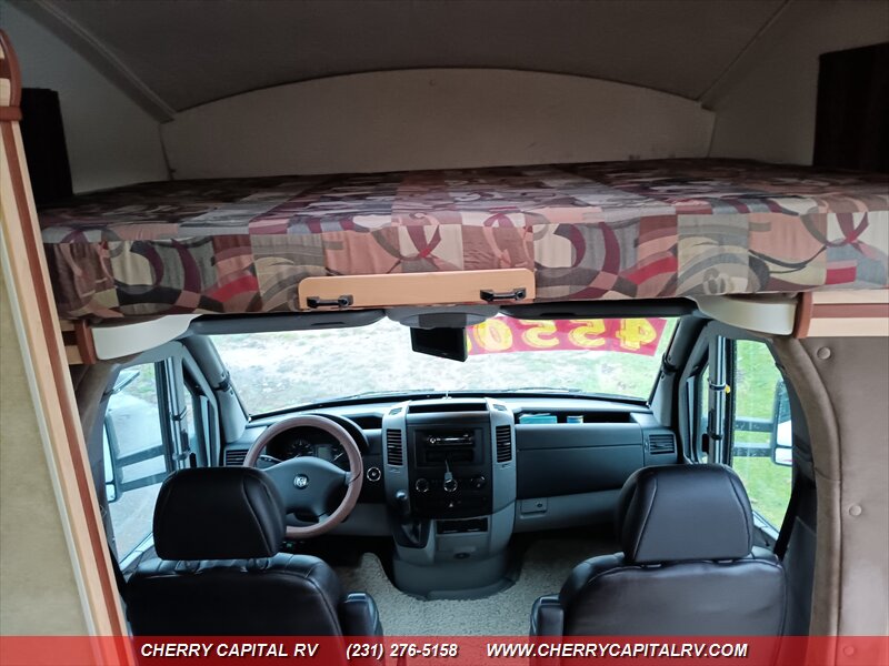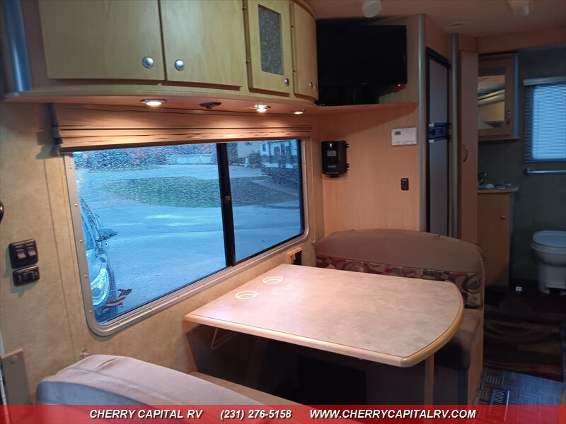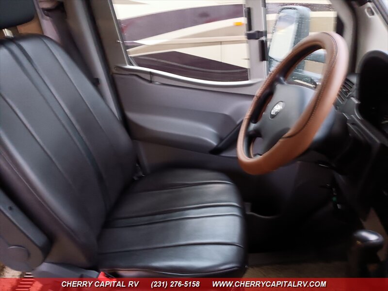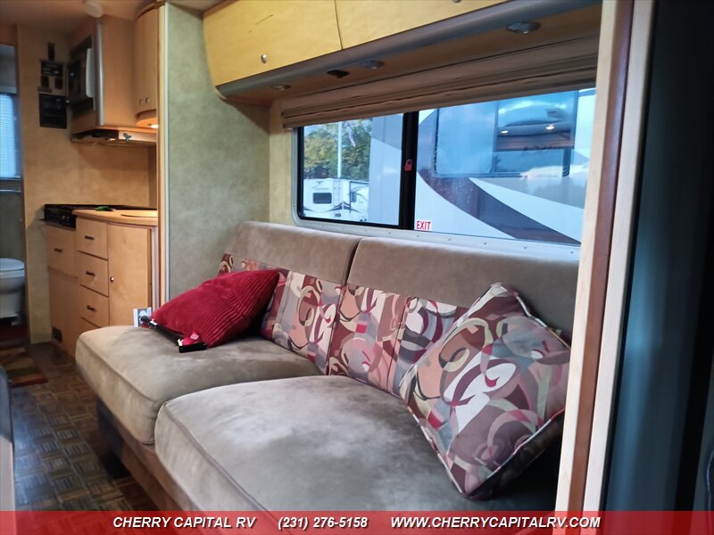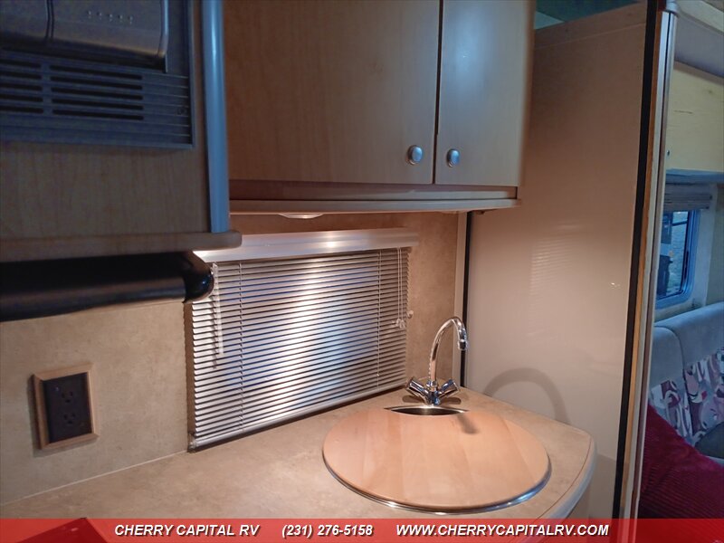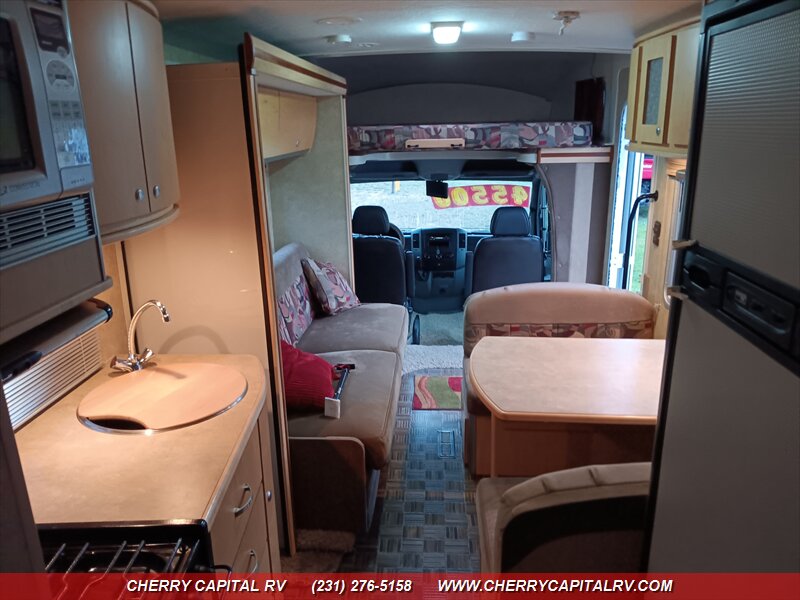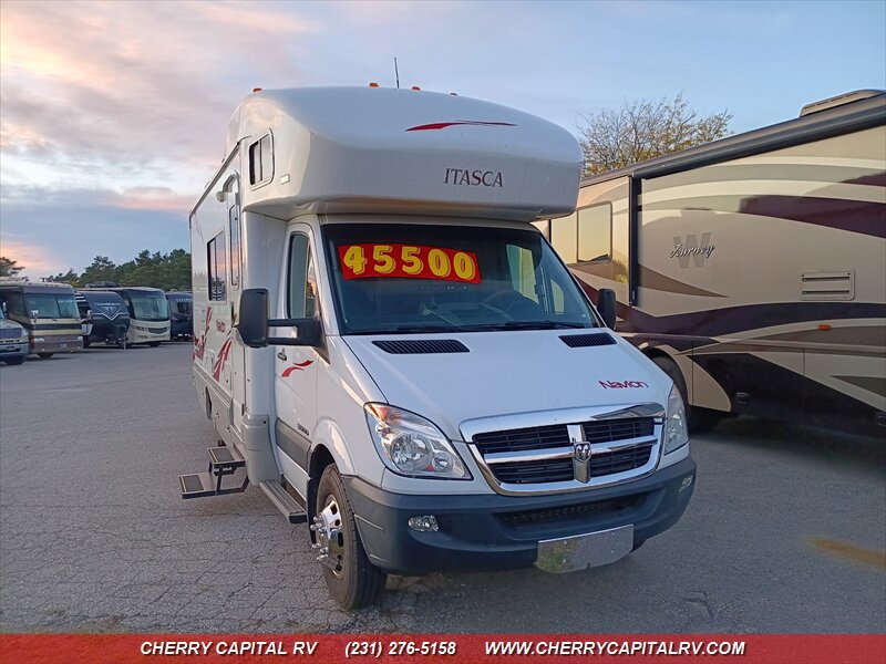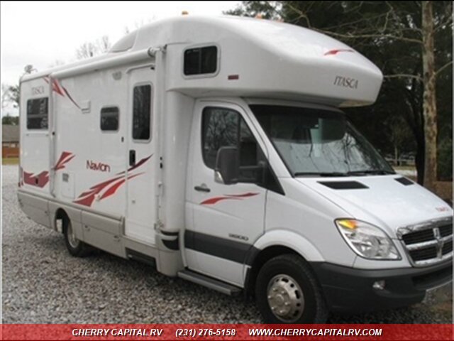 The 2008 Itasca Navion 24H is a Class C motorhome built on a Dodge Sprinter chassis with a Mercedes-Benz turbo-diesel engine. 60,149 MILES. It is a compact and fuel-efficient RV, approximately 24 feet long, with a layout that features a rear bathroom, a single slide-out, a dinette, a sofa, and an overhead sleeping area or storage cabinet. Key features include a full kitchen, a rear bathroom with a separate shower.