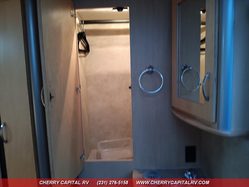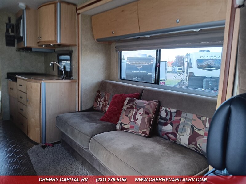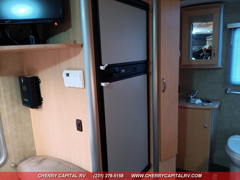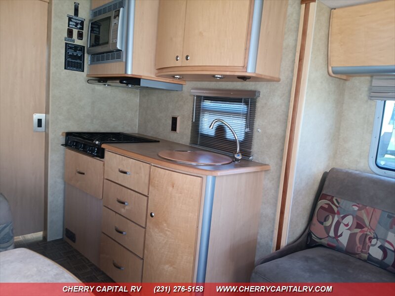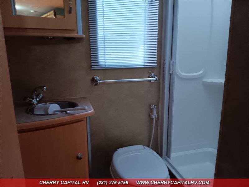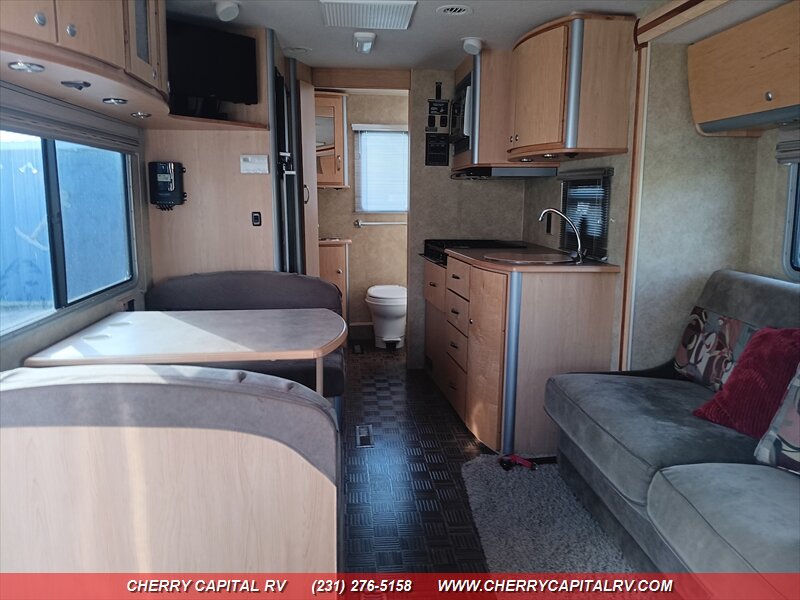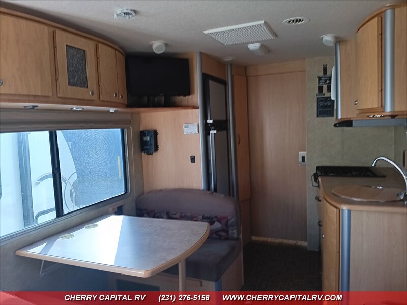 The 2008 Itasca Navion 24H is a Class C motorhome built on a Dodge Sprinter chassis with a Mercedes-Benz turbo-diesel engine. 60,149 MILES. It is a compact and fuel-efficient RV, approximately 24 feet long, with a layout that features a rear bathroom, a single slide-out, a dinette, a sofa, and an overhead sleeping area or storage cabinet. Key features include a full kitchen, a rear bathroom with a separate shower.