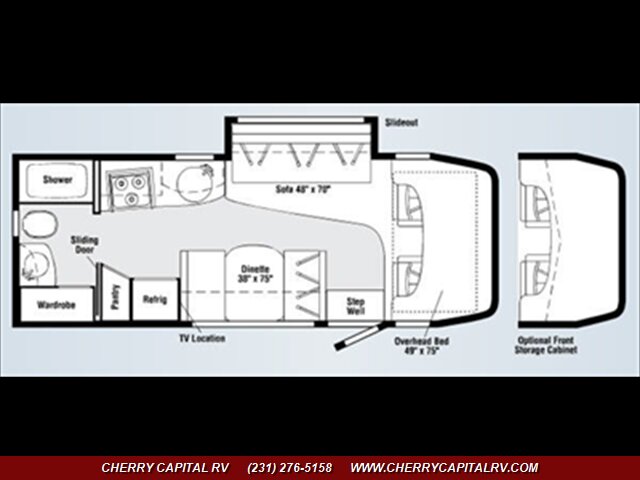 Sleeping: Dinette converts to a bed, and the sofa can convert to a bed. An optional overhead bed is available