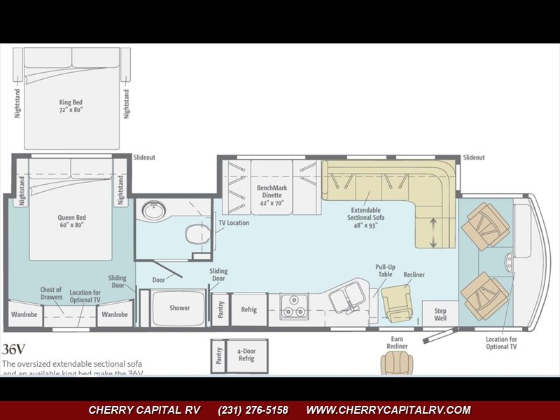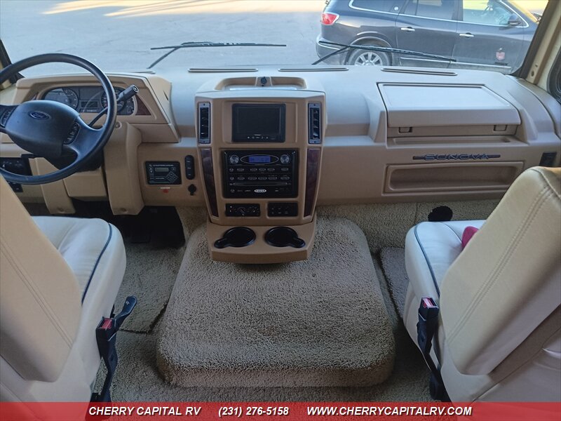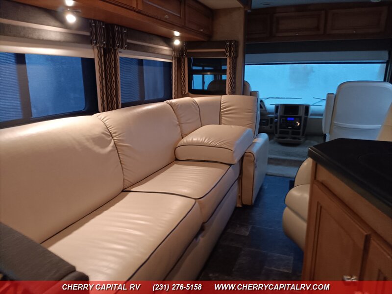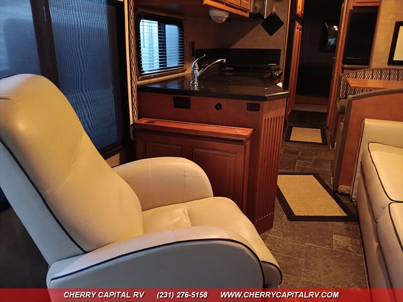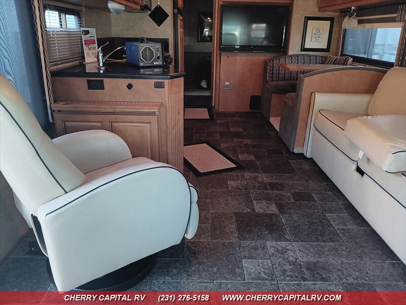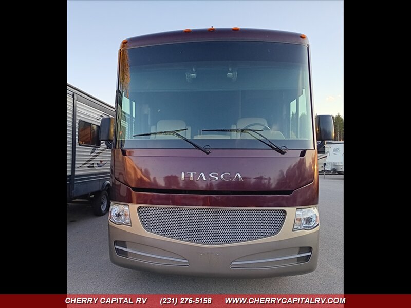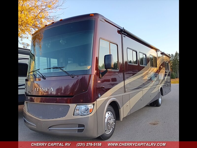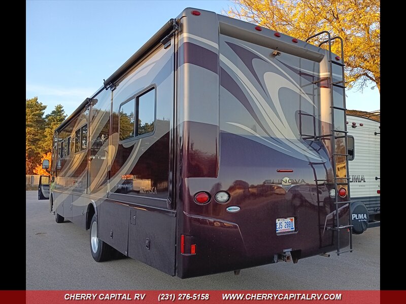 Used 2013 Itasca Sunova 36V has a Ford Triton V10 Engine. Gas Driven LOW MILES 27,252. Beautiful Decor - Captain Chairs in Front Cab. Real Wood throughout. Private Queen Bedroom w/2 Wardrobes AND Chest of Drawers. Extendable Sectional Sofa - 48x93 for Additional Sleeping and Seating. Bathroom between bedroom and living area with Shower and Toilet Room. Kitchen includes 4 Door Refrigerator/Microwave/Convection Oven. Back Up Camera and Side view Cameras. - Seat Passenger Foot Rest. Recliner upgraded to Euro Recliner. Full Body Paint - Black Garnet. 1 Outdoor TV - 2 TVs in Coach.