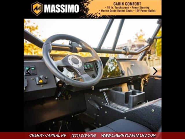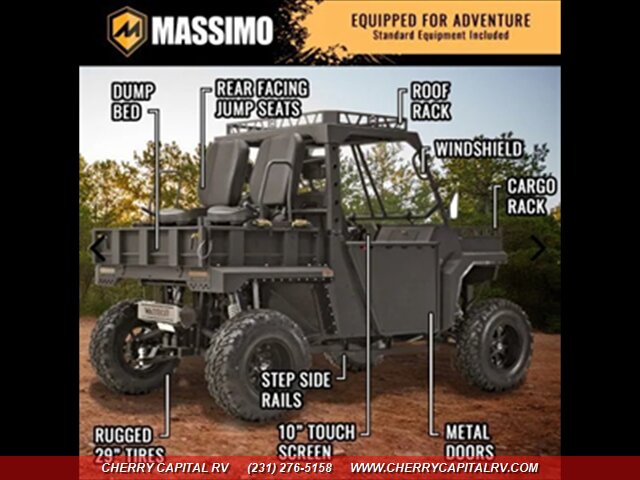 Pushing the boundaries of Off-Road Vehicles to new heights, the Warrior MXD is the result of years of development that makes a bold statement before you ever turn the ignition. Battle-Ready with a Full Metal Jacket, 85HP V-Twin Engine, 13.8in of ground clearance and oversized 29in All-Terrain tires the Warrior MXD’s performance mirrors its image. With a high-capacity 12.6 cubic foot Cargo Bed, Hood and Roof Racks, plus a 1763lb towing capacity, worry less about cargo limits on your next Adventure. Rear-Facing Jump Seats give you more seating and viewing options than ever. The Standard Full Windshield and Full Length Metal Roof have you covered, and the standard 10in Touch Screen Display provides an easy-to-read digital UTV Info Center. Dominate the dirt, dominate the day, with the Warrior MXD from Massimo.