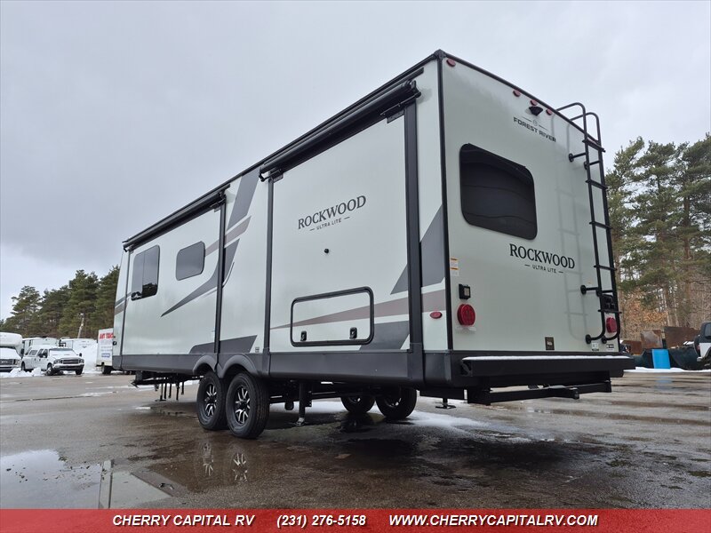 ALL the XTRAS will LEVEL UP your Camping Trip!! Holy counter space! This front kitchen offers a ton of counter space with a giant window to enhance the camping experience. The 67" theater seating is conveniently located right in front of the entertainment center and the cozy space heating fireplace. The master bedroom offers a big 60"x 80" queen bed slide out which makes the room feel residential, with LOTS of storage! This bedroom has a separate entry and exit door that is also covered by the giant 21' awning. Our Rockwood Ultra Lite 2608BS offers upgrades you may not see in other 2608BS models - PLATINUM Package that includes 5.3 Auto Leveling, Frameless Windows, 1800W Inverter, MORyde Strut Assist Entry Step, Dual 30lb LP Tanks. Also added - 2 Slide Toppers, Extra MAXXAir Vent Fan and Vent Cover in Bedroom, Dexter Tow Assist ABS and Sway Mitigation System!