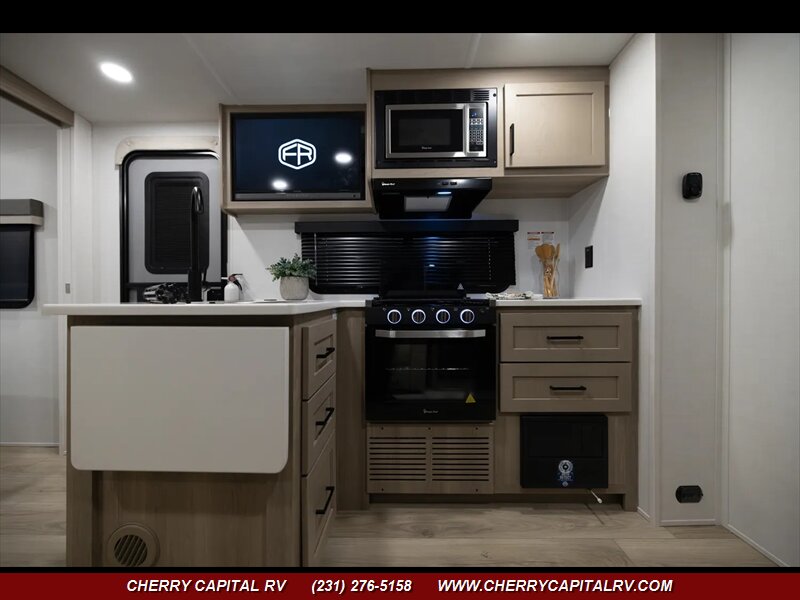 HOT OFF THE LINE...The 2026 ROCKWOOD Mini Lite 2513S - Highlights - OUTDOOR KITCHEN, Slide Toppers, 4 Power Stabilizer Jacks AND XTRA Max Air Vent Fan and Vent Cover- The outside kitchen on this Rockwood Mini Lite feats our new griddle, a refrigerator and grill makes cooking so enjoyable and flexible. The large wardrobe slide makes packing and organization so easy. The large pantry next to the bathroom covers all your kitchen storage needs as well. The center position of the television in your entertainment spaces makes viewing from any part of the living quarters easy. This Unit is a gorgeous couple coach that will give you tons of TRAVEL JOY!