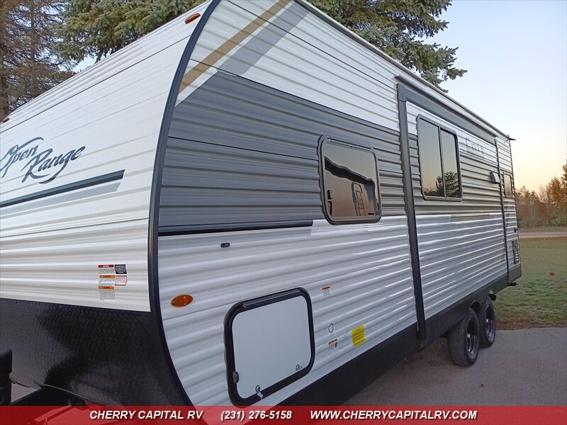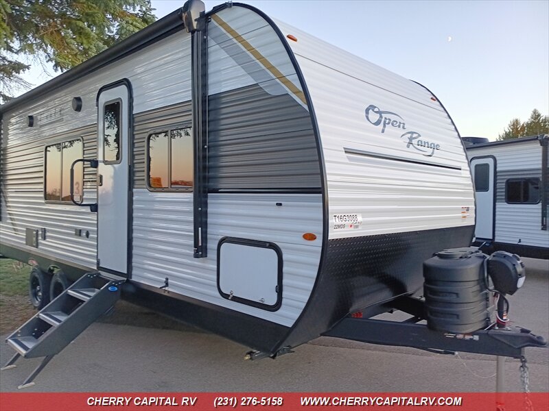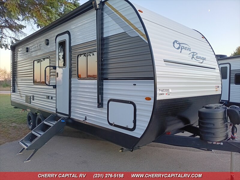 The 2026 Open Range 22MDS offers a Roomy, Open, Floor Plan. The 22MDS is a Single with Big Picture Window and Theatre Seats. People asked and Open Range heard - Dinettes - This unit includes a Traditional Dinette that Converts to a Bed. There is a Queen 60x80 Bed with Overhead Shelf and Storage on, each side of the Bed, in the front. The Kitchen is in the Back and Includes a Microwave/3 Burner Stove/12V Refrigerator.. The Bathroom has a 24x40 Tub/Shower, Sink, Toilet AND LINEN CLOSET. Electric Awning and Pass Through Storage Outside- Just a few of the Highlights - Stop In and Take a Look! Cherry Capital RV