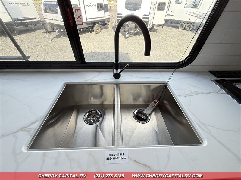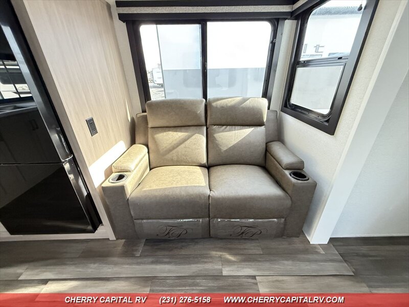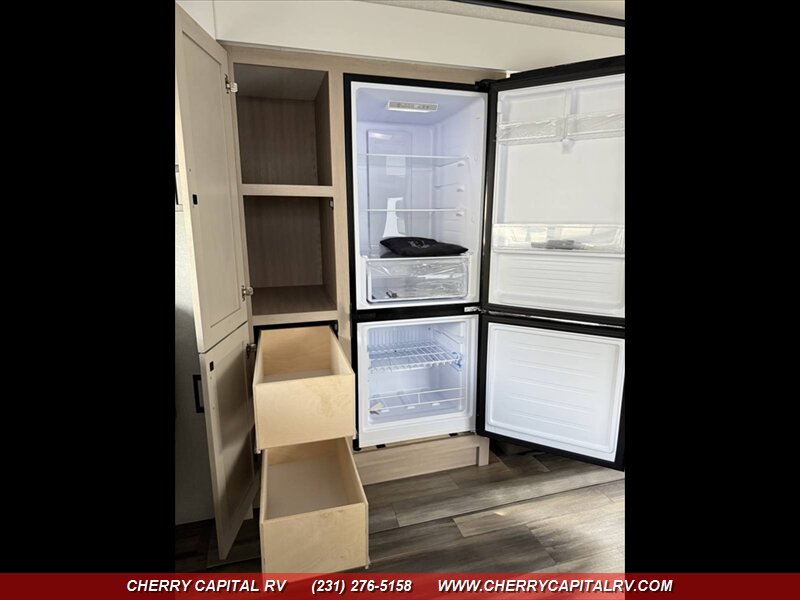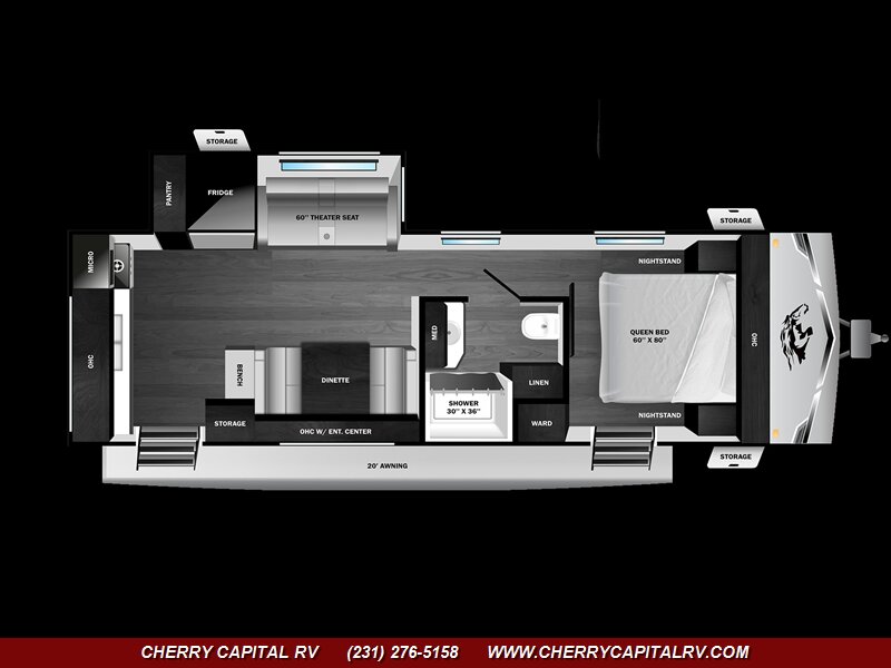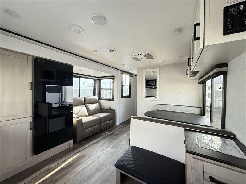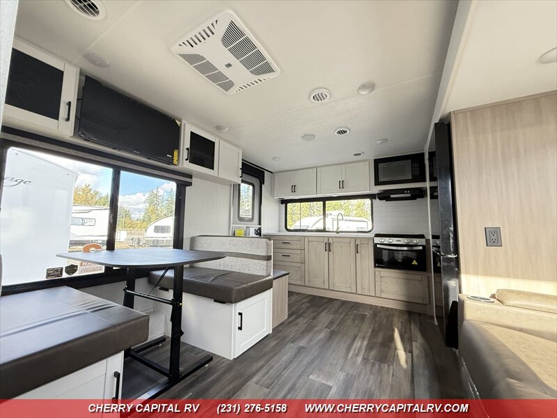 The 230MKD Range Lite by Open Range has Composite Side Walls, Porcelain Toilet, Solar, One Slide, Theatre Seats PLUS Dinette PLUS Entertainment Center. A Bench with Storage near the Rear Door is a nice addition to this floor plan. This Trailer has a Front Queen private bedroom, Bathroom with Linen Closet and 30x36 Shower. The Kitchen and Living is in the Rear of this unit. The Stove, Cabinets and Kitchen Sink sit in the very back of the unit overlooking large back window. This is another beautiful Layout by Open Range!