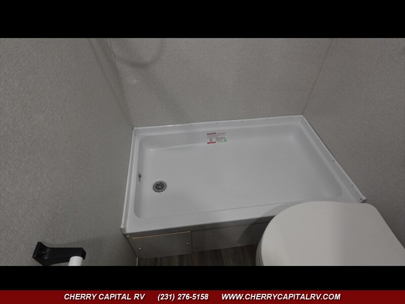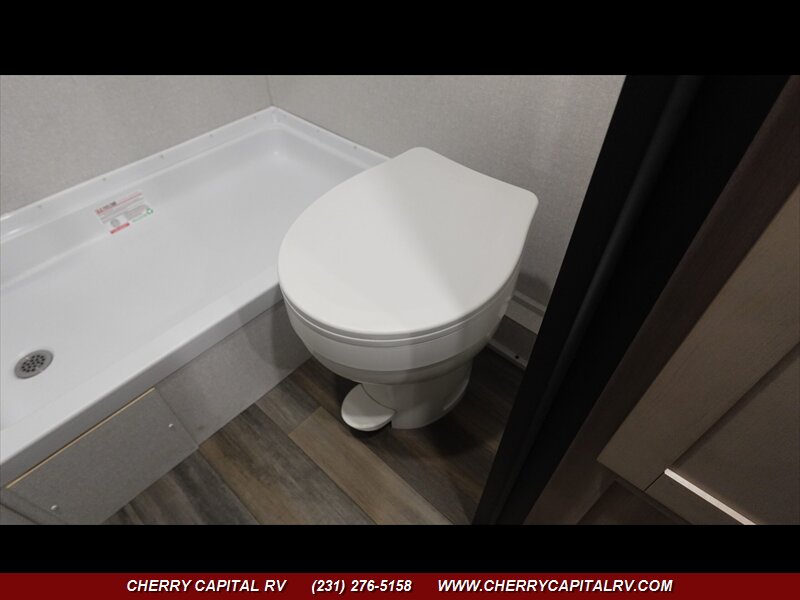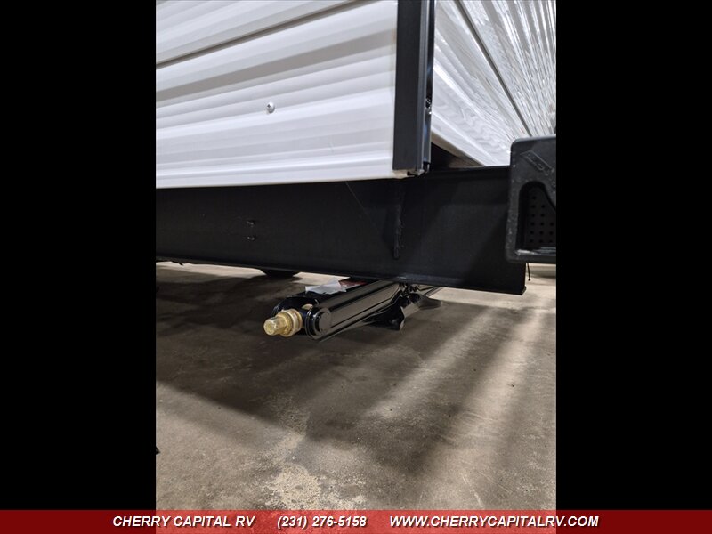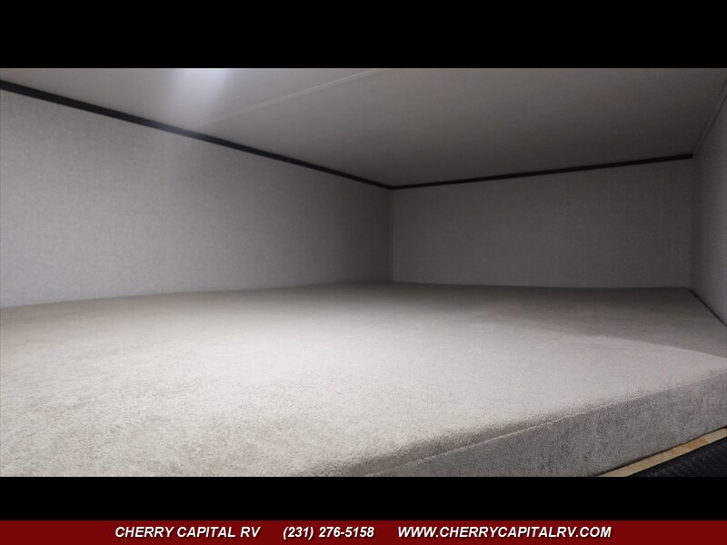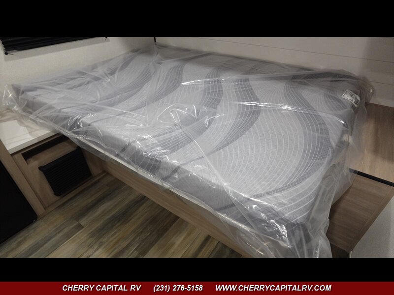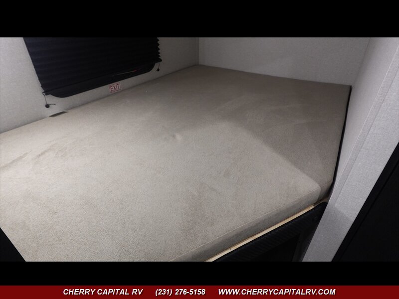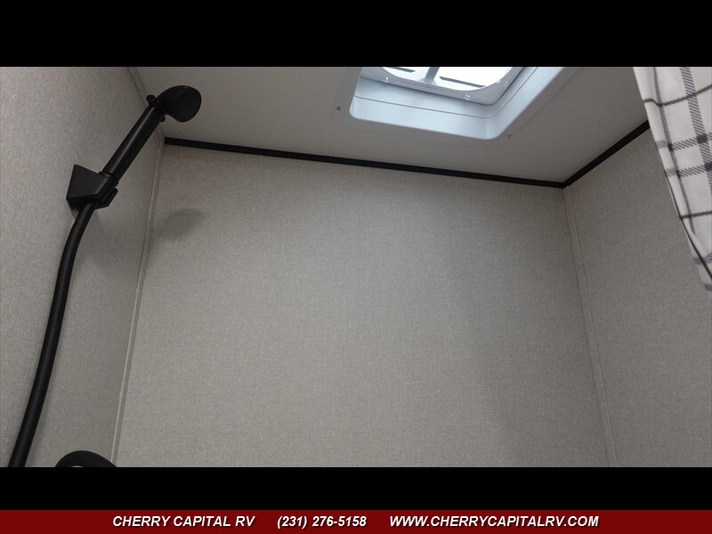 This easy to tow travel trailer features compact sleeping spaces thanks to the double-size bunk beds in the rear corner, and the private bath is right next to the bunks for easy nighttime use! You'll have the front queen bed to yourselves, along with a wardrobe, nightstand, and overhead shelf for your things. A two-burner cooktop and microwave oven will let you make meals each day, and there is a 12V refrigerator to keep your cold items fresh. Outside, you'll enjoy the 10' power awning for added shade, and there are two exterior storage compartments to keep fishing poles, hiking gear and more!