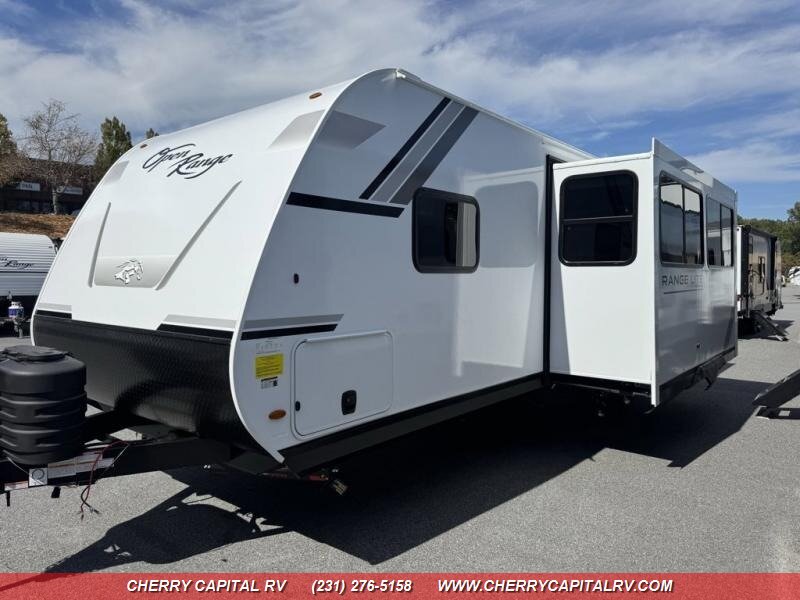 The 2026 Open Range 250RBL is SPACIOUSE. Front Queen Private Bedroom, Dinette AND Tri Fold Sofa. Roomy Kitchen with L Shaped Counter Top, giving you more space. Walk In Pantry, Entertainment Center w/ LED smart TV. Keep the chill off with the beautiful Fireplace. LARGE Rear Bathroom with porcelain toilet and additional cabinets space for Linens - 30x36 Shower, Extended Bathroom Counter - giving you MUCH MORE ROOM for bathroom necessities. Rear Ladder, 200W Solar w/ 30 amp controller THERMAL SEAL (0 to 100 degree tested weather insulation package). REAL WOOD CABINETRY Drawer/Door Fronts. A must see unit!