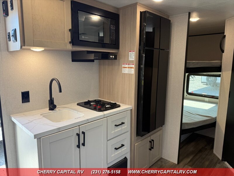 Upgrade from tent camping and experience more comfort with the new Colt Travel Trailer Series, our most budget-friendly RV lineup. Inside, you’ll enjoy residential-style features like solid countertops, hidden-hinge cabinetry, a high-rise kitchen faucet, and a 12V refrigerator. The main sleeping area includes a standard queen mattress for home-like comfort, while the bathroom is equipped with a marine-grade foot-flush toilet, tub/shower surround, skylight, vent, and an on-demand tankless water heater that delivers long hot showers. Durable swing-down solid steps provide a sturdy entry every time, giving you confidence with each adventure. Perfect for first-time RVers or anyone seeking an affordable, lightweight upgrade, the Colt Travel Trailer makes camping easy, comfortable, and accessible.