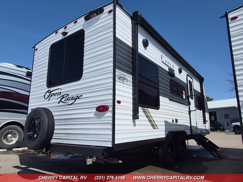 Another GREAT Unit by Open Range! This is a Dual Axle, No Slide Unit. Pass Through Front Storage, 16ft Awning w/LED lights. Power Tongue. Dual Kitchen Sink, Jack Knife Sofa AND Dinette- in Rear, that includes Over Head Storage above both. This unit includes a Pantry and Large Refrigerator. Queen walk around Bed, in Front, that includes Side and Overhead Storage. Bathroom includes 40" Tub/Shower w/some bathroom counter space and storage. Lots of Natural Light.