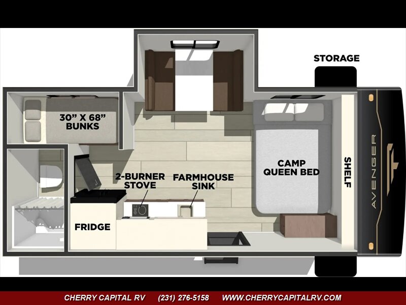Looking for an easy-to-tow family travel trailer? Take a look at this Bunk House! The Avenger 17BHS by Forest River weighs just over 4,000 lbs! Enjoy a front queen bed with ample wardrobe space and a nightstand., The modern kitchen features a cooktop, microwave and a large 12-volt refrigerator. The dinette slide doubles as an extra bed and the rear bunk room is conveniently located next to the full bath. Perfect for family getaways! This unit offers Power Rear Stabilizer Jacks, Power Tongue and Outdoor Shower,