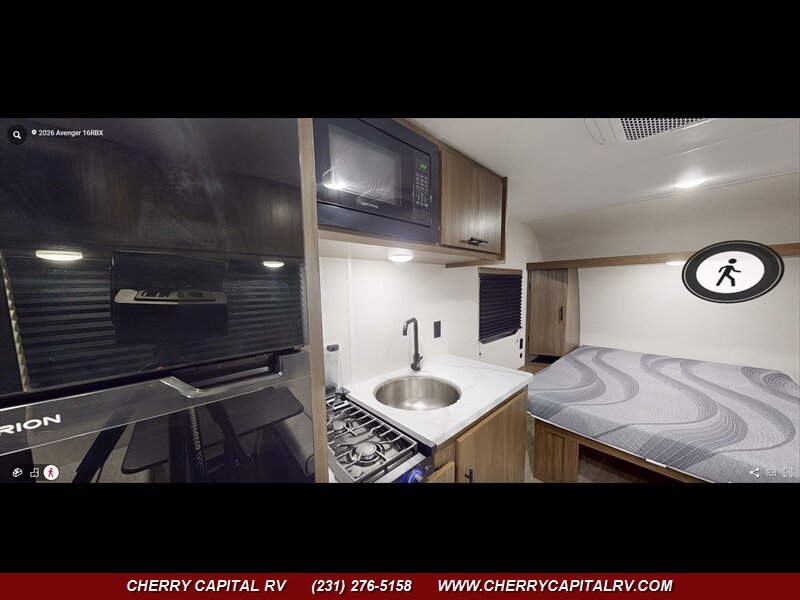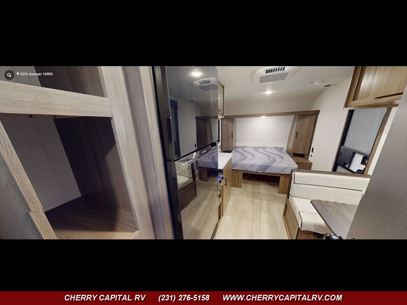 Looking for a lightweight RV perfect for solo travelers and couples? The Avenger 16RBX by Forest River is ideal with a simple, yet spacious design! Enjoy a front Walkaround, Camp queen bed with plenty of wardrobe space. Also nearby is a dinette that converts into an extra bed. The modern kitchen features a refrigerator, Large Stainless-Steel sink, two-burner stovetop, pantry and a microwave. In the rear is a full bathroom with plenty of linen storage.